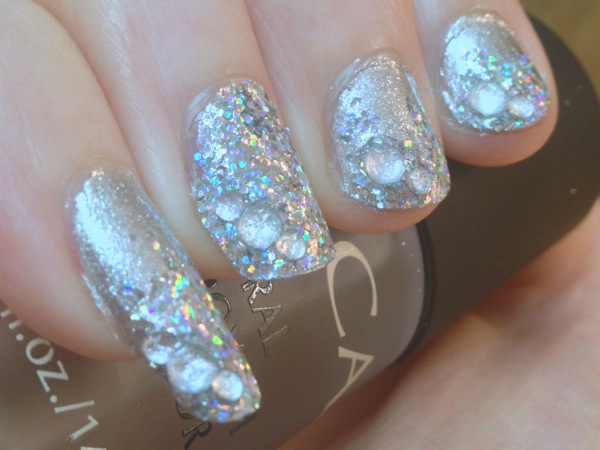 M.A.C Reflects glitter Brilliant in 3D Silver mixed with Revlon Nail Enamel in Clear 771 and dabbed on with a sponge